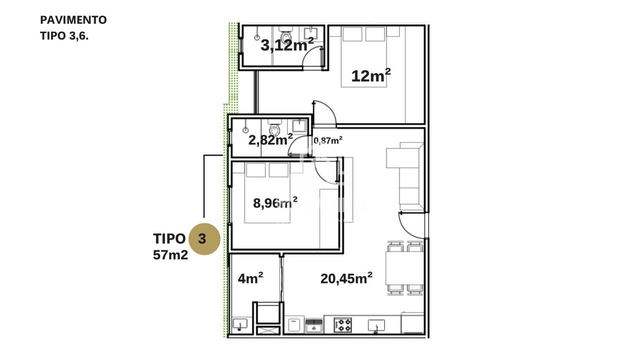 Área Privativa › 57,00m²